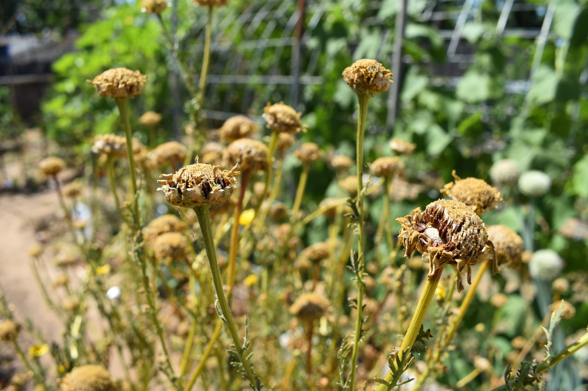 This week, I uprooted a patch of lemongrass. My mom was going to compost it all, but ultimately decided the stems were still good and it would be a waste to just put the entire thing in the compost. So she got to separating them, and I got to cutting them down to propagate. I also harvested chrysanthemum seeds. My mom let the flower heads mature and dry, so I cut them to get the seeds later. I was starting to do the same with a kale plant. I harvested most of the seed pods but discovered a spider who made itself a nice home between the leaves. I quickly decided I was done that day.
