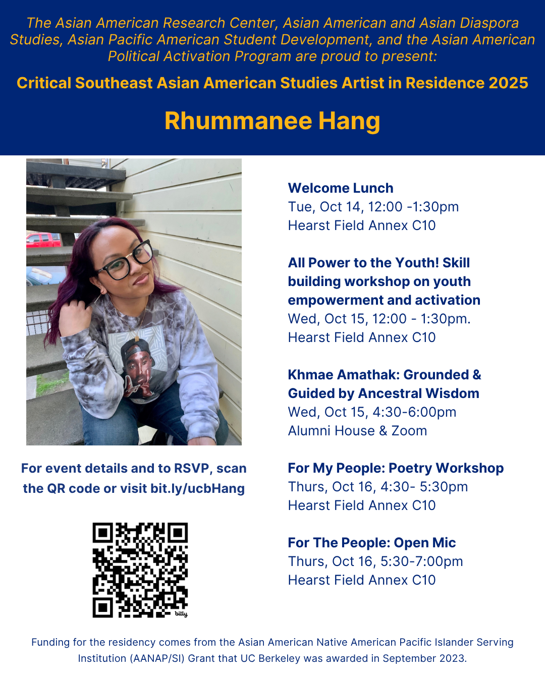 Join me October 14-16th for my residency with Cal's Critical Southeast Asian American Studies. We have a bunch of things planned for next week. There's lunch Tuesday, then I facilitate a workshop for students followed by the week's capstone event. We wrap up the residency with a poetry workshop and open mic. Will I see you there? RSVP so they know how much food to prepare :)
